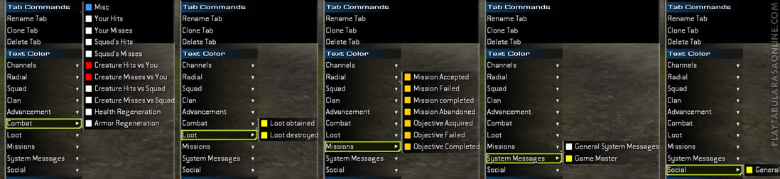 - Right-clicking the tabs brings up a whole drop down menu of options to help make your chatting experience in Tabula Rasa a little bit more pleasant.